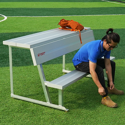 The player bench with shelf can be used in dugouts or on an open field. The back shelf gives players and coaches a place for scorebooks, gloves, hats, helmets, water bottles and more. all aluminum construction with lightweight and maintenance free. we can customize the width of seats according to your field space.