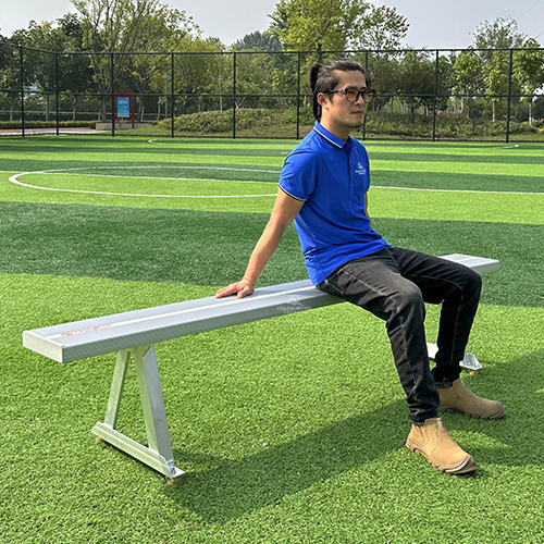 The seat board of this player bench is made from 1-3/4" × 9-1/2" size 6061-T6 aluminum alloy extrusion. And the surface of the seat board conducted anodic oxidation and sandblasting processes. The bench legs are made from 6063-T5 aluminum. This bench can choose from permanent (inground) or portable.