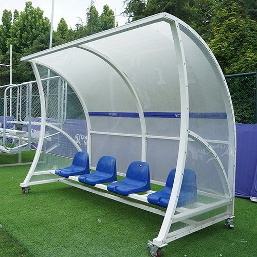 The shelter ensures comfort for players and coaches while providing a 360° panoramic view. It boasts a long service life and excellent portability. A range of seat colors and styles are available for selection. The panels' color is also customizable. The overall frame is welded and assembled from size of 50×50 and 2.5 wall thickness steel square pipes.