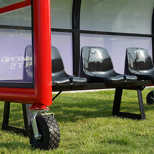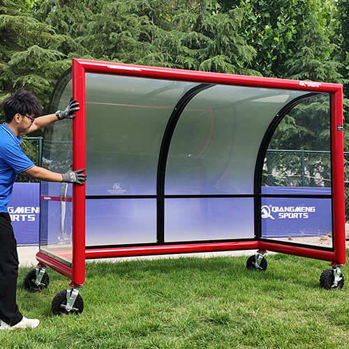 The shelter ensures comfort for players and coaches while providing a 360° panoramic view. It boasts a long service life and excellent portability. A range of seat colors and styles are available for selection. The panels' color is also customizable. The overall frame is welded and assembled by Alu diameter 110*100mm