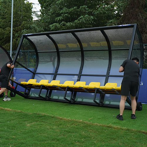 The shelter ensures comfort for players and coaches while providing a 360° panoramic view. It boasts a long service life and excellent portability. A range of seat colors and styles are available for selection. The panels' color is also customizable. The overall frame is welded and assembled by Alu diameter 110*100mm